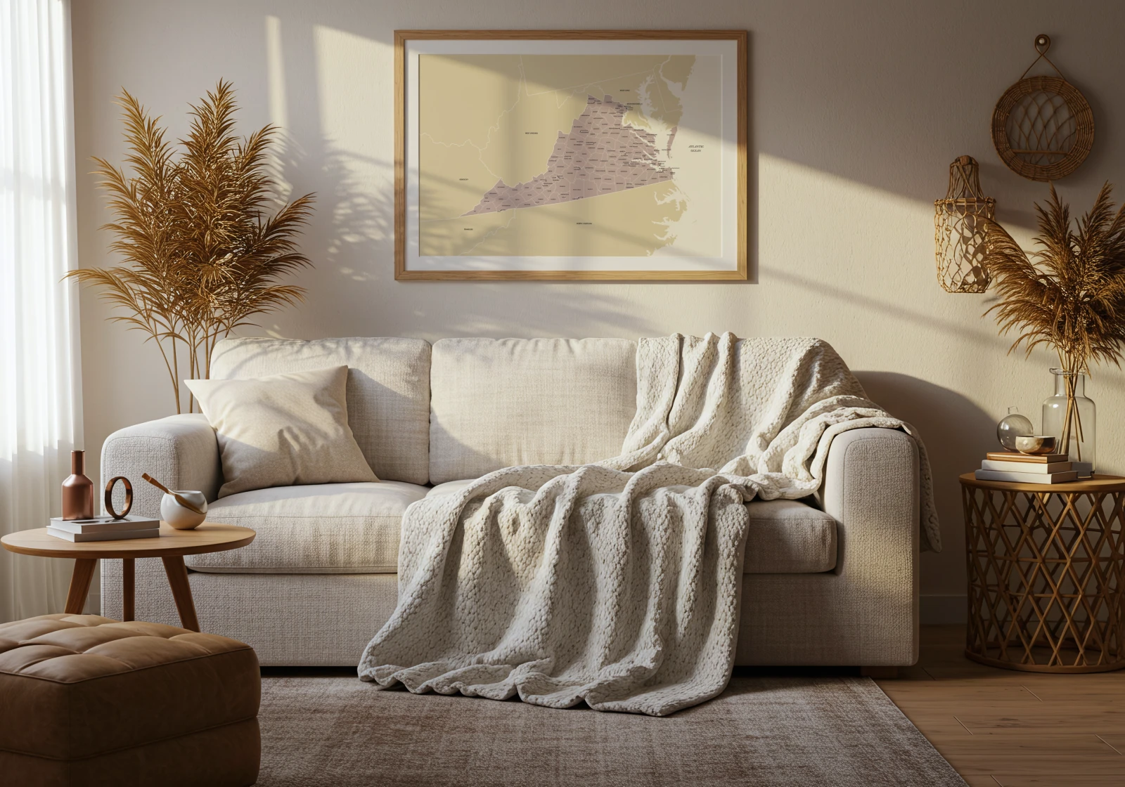 Discover how our maps look when framed and displayed in real interiors. Use these to spark ideas for your own wall décor.