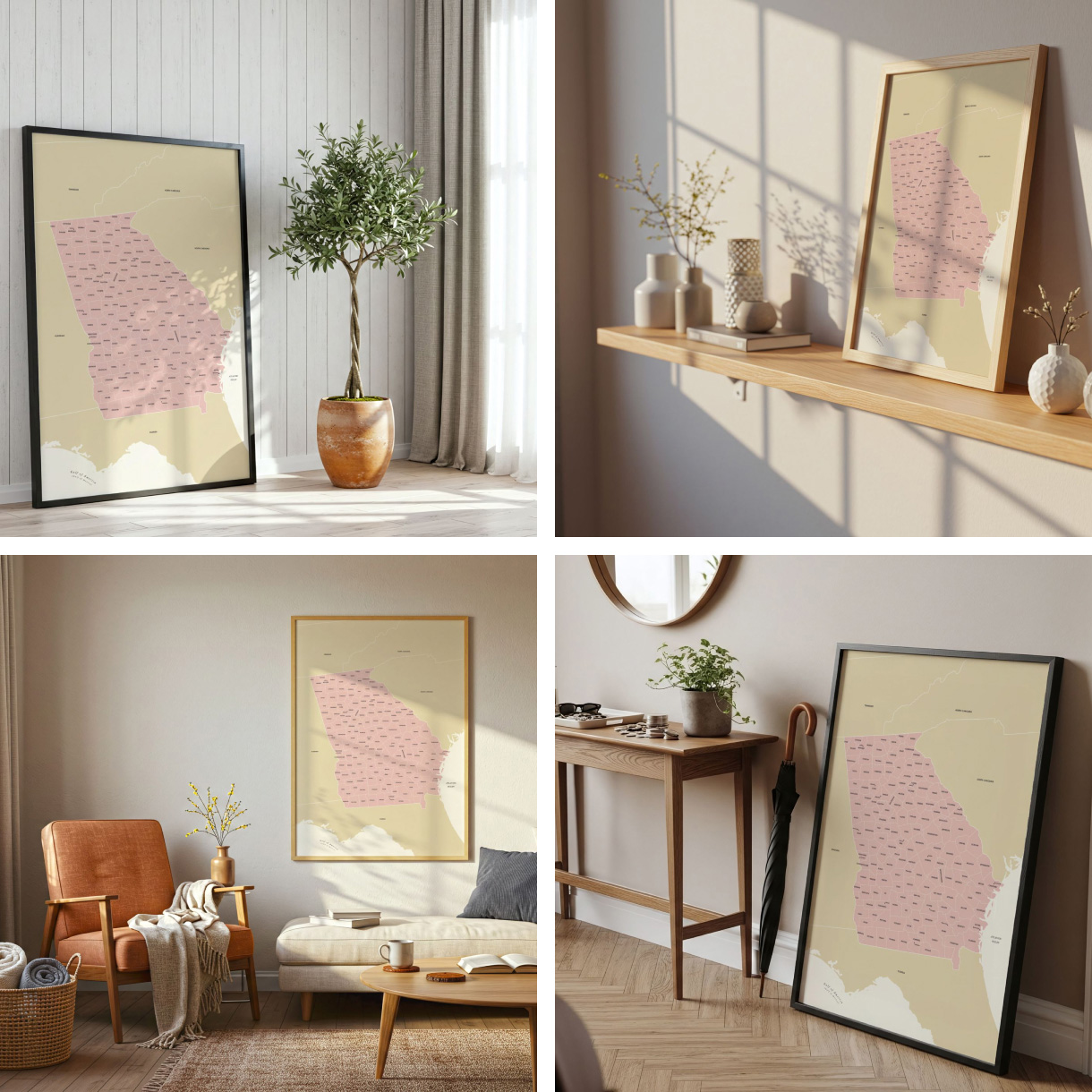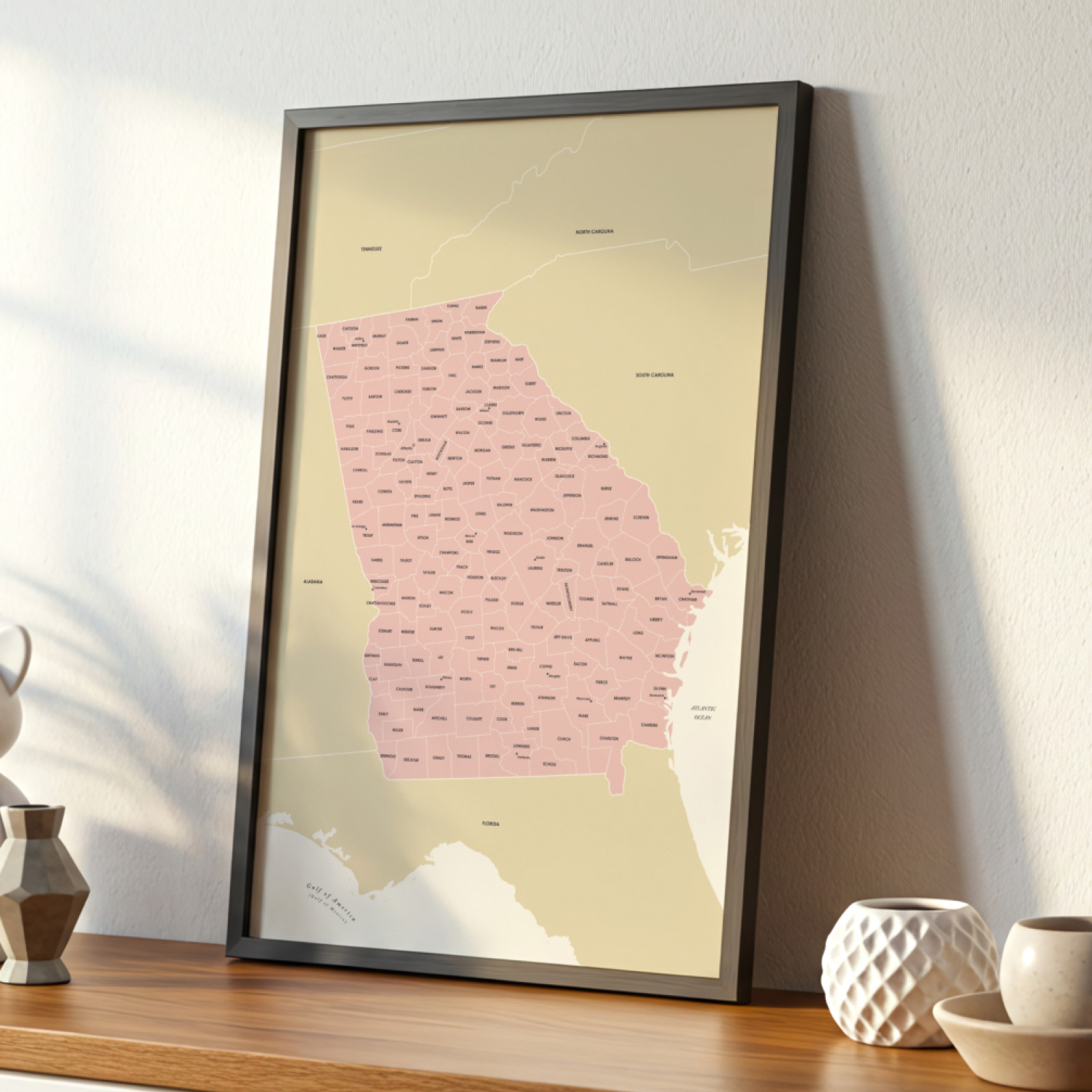 This Georgia map print suits both decorative and educational purposes. Teachers often use it to support classroom geography lessons, while families enjoy it as a meaningful piece connecting them to their home state. Interior designers appreciate the print for its balance of subtlety and detail, making it an easy addition to living rooms, entryways, hallways, or reading nooks.