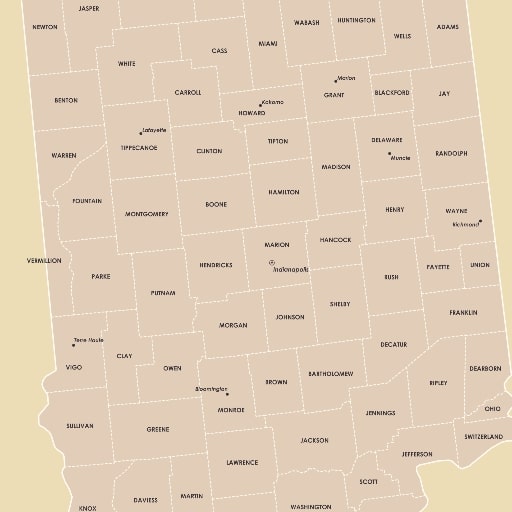 This Indiana county map is designed with clarity and elegance in mind. Every county is clearly outlined and labeled, making it easy to explore the state’s geography at a glance. Major cities are highlighted so you can quickly identify familiar places, plan teaching activities, or simply enjoy tracing your favourite roads and regions.