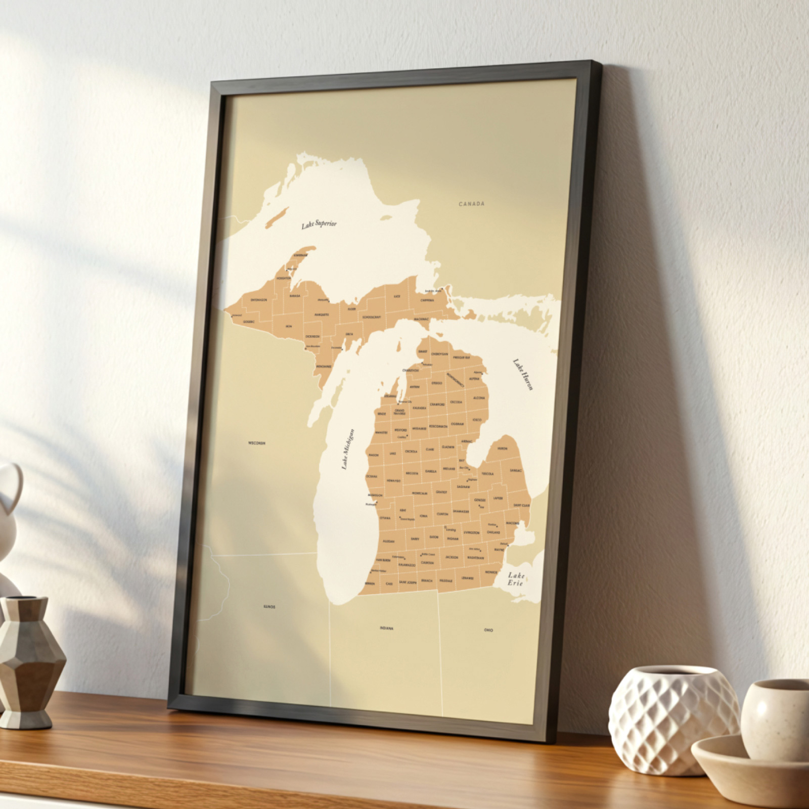 From the sweeping shoreline of Lake Michigan to the rugged beauty of the Upper Peninsula, this map offers a stylish tribute to the state. If you’re searching for neutral wall décor, a geography-inspired artwork, or a professional-grade printable map, this Michigan design brings all the qualities of premium wall art together in one elegant digital package.